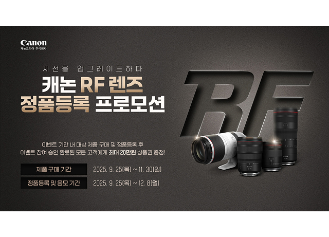 토탈 이미징 솔루션 기업 캐논코리아(대표이사 박정우, kr.canon)가 가을 맞이 RF 렌즈 구매 고객 대상 RF 렌즈 정품등록 프로모션을 실시한다.