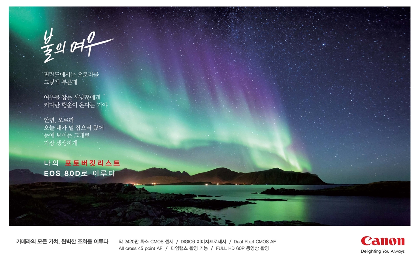 카메라만의 가치를 담은 캠페인이다. 캐논 EOS 80D는 스틸 이미지와 동영상 촬영 모두에 강점을 가진 DSLR 카메라로 자신만의 ‘포토 버킷리스트’를 이루고자 하는 사용자들에게