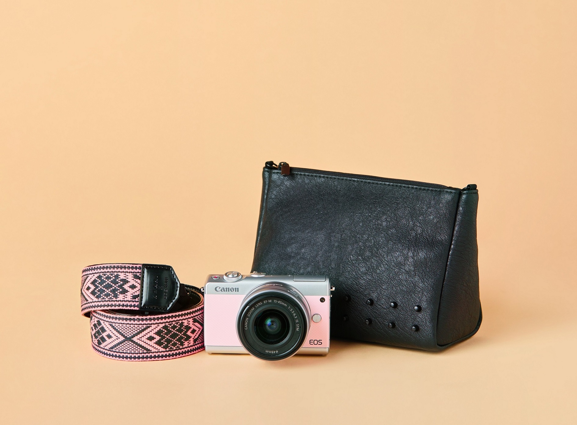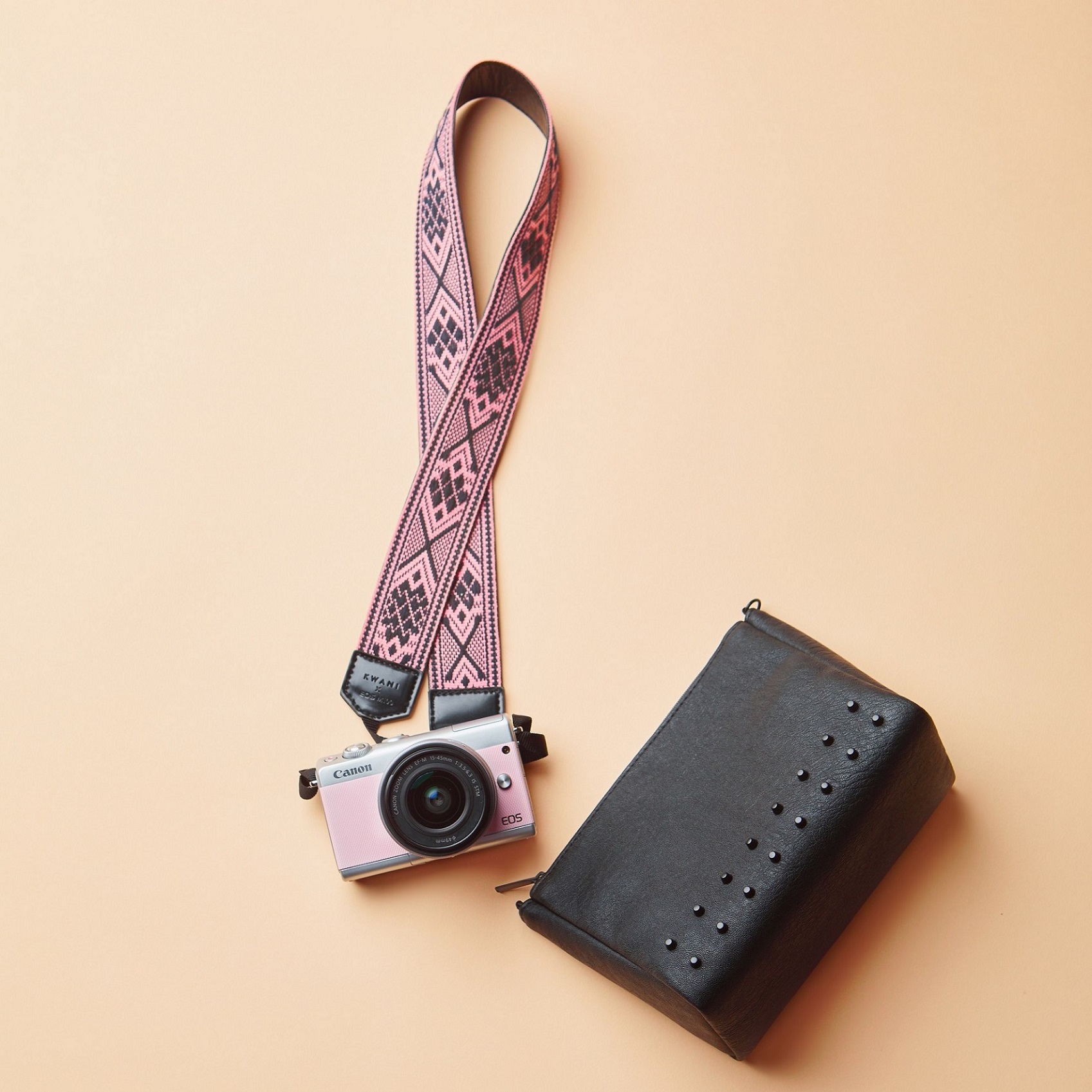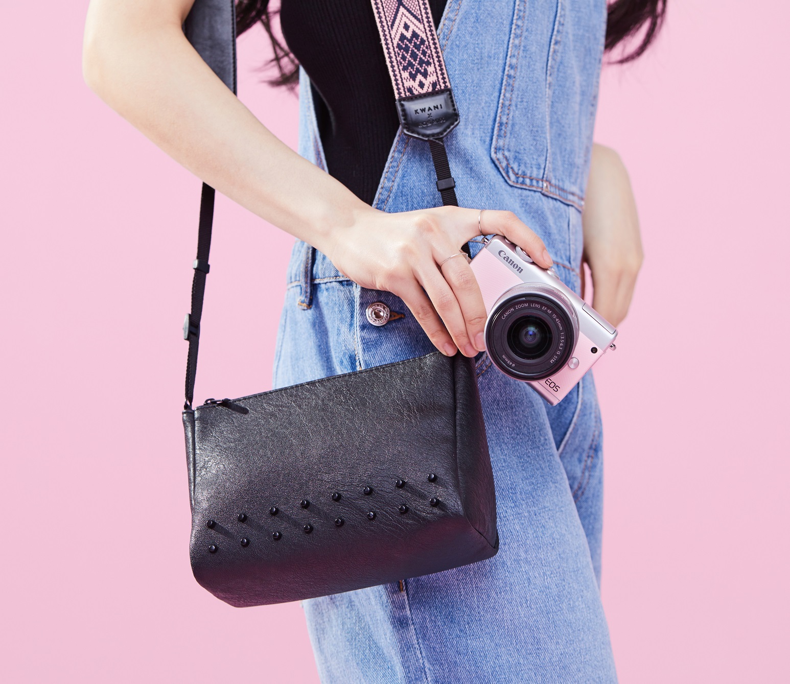 뿐만 아니라 콜라보레이션 패키지에 함께 구성된 콰니 액세서리와 매치해 패션 아이템으로도 다양하게 활용 가능하다. 카메라와 파우치 겸용의 에스닉 패턴 스트랩과 다용도 콰니 스터드 파우치는 EOS M100 핑크와 함께 캐주얼하고 세련된 봄 스타일링을 완성해 준다.