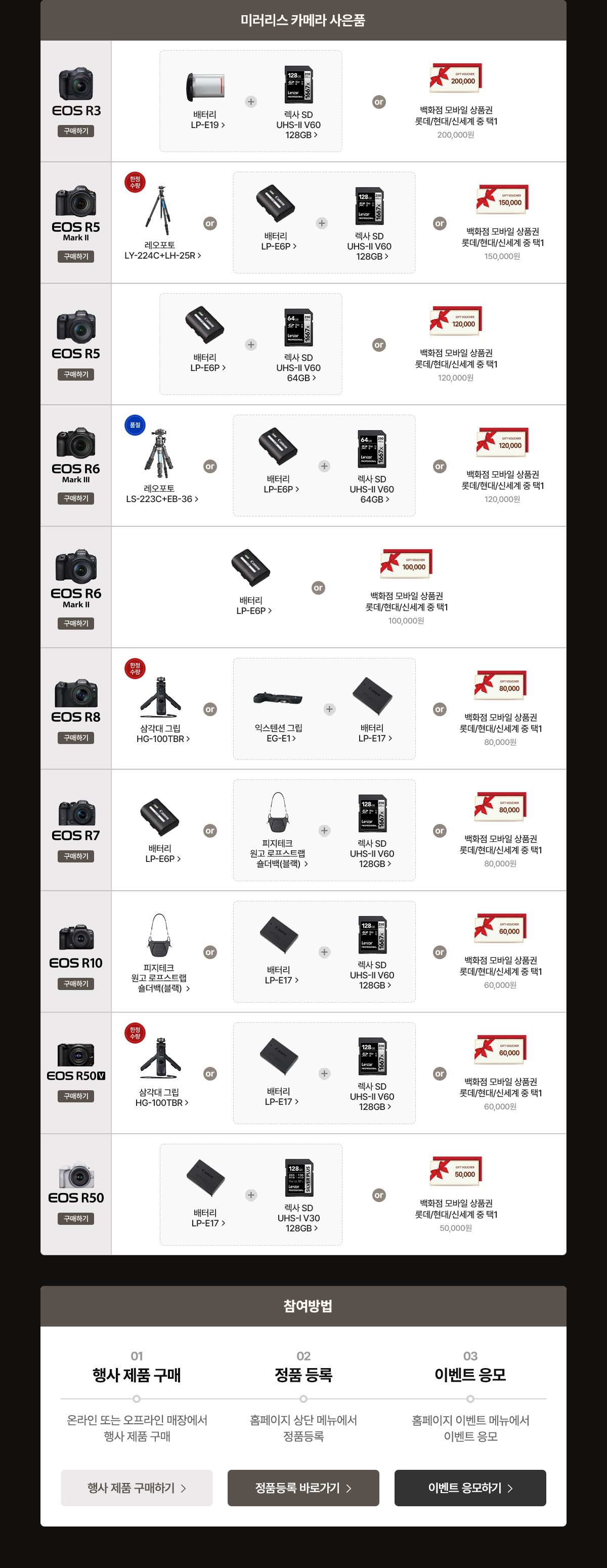 • 1개의 ID로 카메라 기종 별 1회만 이벤트 신청이 가능합니다. (동일 기종 중복 신청 불가)