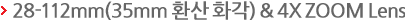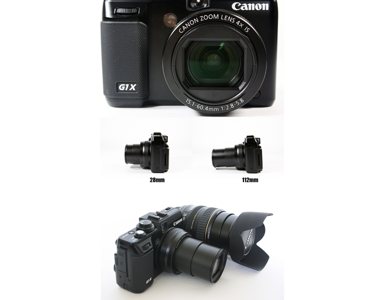 G1 X의 렌즈는 EF 렌즈와 같이 엄격한 공정기준으로 만들어 졌으며, 특히 EF 렌즈에는 적용이 되지 않은 D컷과 I컷이라는 기술이 적용되었습니다. DSLR 대비 소형 바디이기 때문에 렌즈의 소형화를 이루고자 적용된 기술 입니다. EF 28-105mm USM 렌즈랑 비교해도 PowerShot G1 X 는 112mm(35mm 환산 화각)까지 촬영이 가능하면서 렌즈 경통 길이는 거의 비슷합니다. PowerShot G1 X렌즈의 장점은 28mm(35mm 환산 화각) 에서 F/2.8의 밝은 조리개로 풍경부터 인물까지 촬영할 수 있다는 점을 들 수 있습니다.