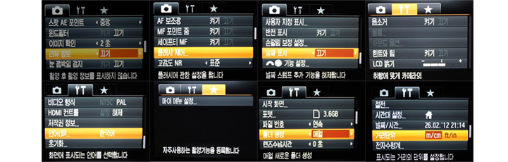 기존 메뉴는 PowerShot G12 와 EOS 시스템에서 사용되는 메뉴 구성을 계승하였습니다. 대부분의 메뉴 설정을 활용해서 유저가 원하는 설정으로 카메라를 사용할 수 있게 되어 있습니다. 그리고 PowerShot에서 계속 지원해 주고 있는 마이 메뉴 설정을 PowerShot G1 X 에서도 유지를 하고 있습니다. 버튼 기능 설정을 이용해서 다이얼의 기능을 세팅할 수도 있습니다. 세부적인 설정도 가능하고 원하는 기능을 대부분 설정 메뉴에서 선택해서 변경 할 수 있습니다.