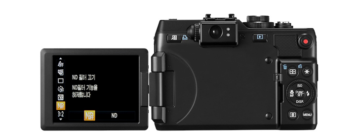 PowerShot G1 X 에서는 전작에서 매우 높게 평가되었던 회전형 액정을 계승하였습니다. 92만 화소도트의 고화질 LCD 액정은 사진 촬영 후 확인할 때 상당한 편의성과 정확성을 더해주고 있습니다. 회전형 액정은 EOS 보급형 DSLR에도 채택이 되어서 사용 되고 있는데, PowerShot G1 X는 기존의 G 시리즈의 후면 LCD가 의도하지 않은 움직임이 생겼던 부분을 방지하기 위해서 LCD 액정을 고정시키는 부분이 추가 개선 되었습니다.