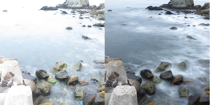 PowerShot G1 X / f/4.4 / 4s / ISO:400 / ND 필터 OFF – 왼쪽사진 PowerShot G1 X / f/4.5 / 4S / ISO:400 / ND 필터 ON- 오른쪽 사진
