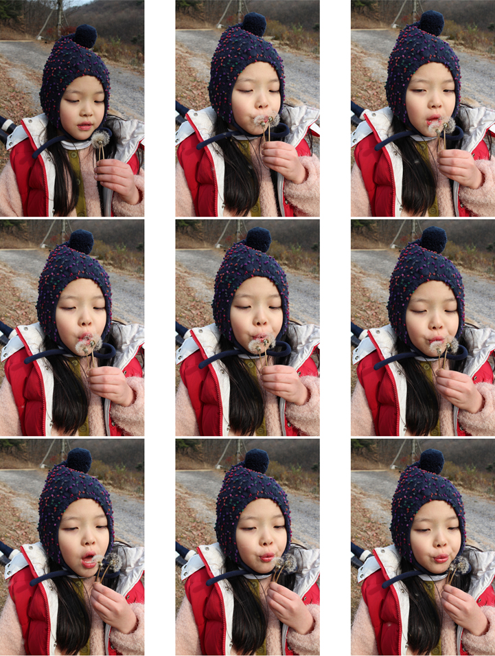 겨울, 길가에 민들레 홀씨를 발견한 둘째가 '후~후~' 하며 홀씨를 부는 모습. 홀씨들 멀리 멀리 날아가 내년 봄에 노란 꽃으로 만나겠지요. |