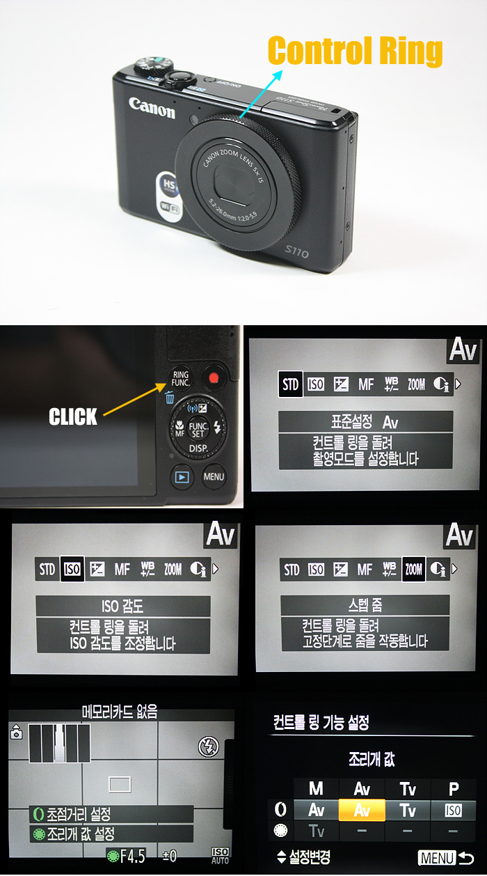 전 모델인 powershot s100 에서도 매우 유용하게 잘 사용했던 기능이다. 컨트롤 링은 이번 powershot s110에서도 동일한 기능을 구현 하였다.