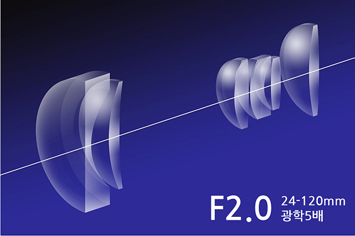 24-120mm 5x 렌즈는 크지 않고 이전 모델과 동일한 디자인을 유지 하고 있다. 컨트롤 링의 경우, 링 주변부의 빗금의 디자인이 달라졌는데 이전 모델에 비해 고급스러운 느낌을 더한다.
