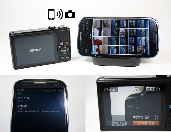 powershot s110은 새롭게 wi-fi 기능이 탑재되어 있다. 이 기능은 촬영한 사진을 카메라나 컴퓨터에서만 보는 것이 아니라 wi-fi를 통해서 스마트폰과 카메라를 연동하여 사진을 볼 수 있는 상당히 편리한 기능이다. 전용앱인 캐논 카메라윈도우를 스마트폰에 설치하여 다양한 기능을 사용할 수 있다, 요즘 많은 사람들이 찍은 사진을 바로 sns 에 업로드 하는 것을 원하고 있는데 이러한 요구사항을 충족시켜주는 막강한 기능이다.