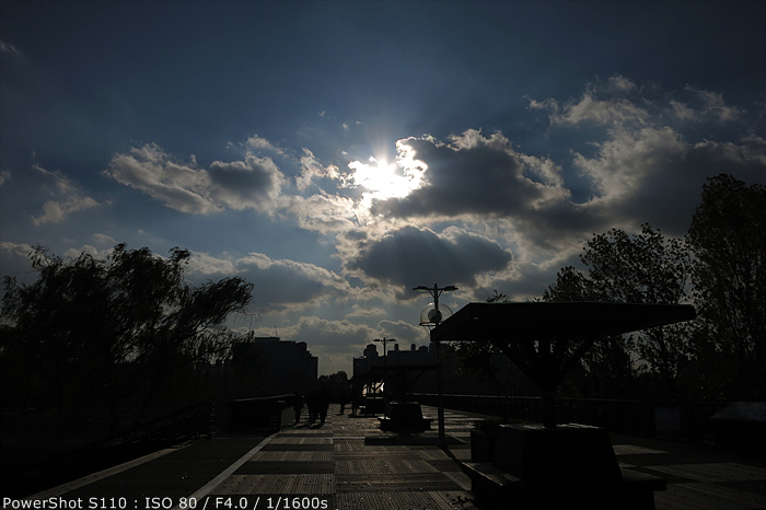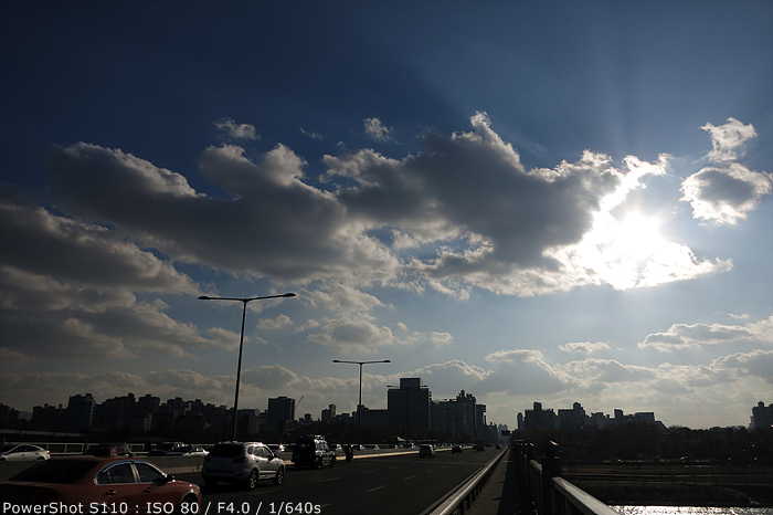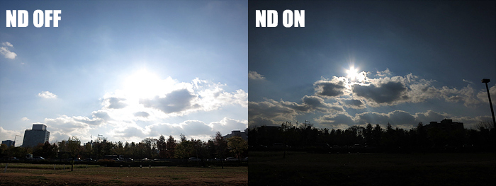 앞서 렌즈부분에서 언급한대로 powershot s110은 nd 필터 기능을 지원하고 있어 맑은 날 야외에서 조리개 f/2.0 으로 촬영 시 셔터 속도 한계로 인해 노출 오버가 발생할 수 있다. 이러한 상황을 방지하기 위해서 nd 필터 기능을 사용하면 된다. nd 필터 기능이 없는 카메라의 경우 실제 필터를 구매하여 사용해야 되지만 powershot s110은 nd 필터 기능을 내장하고 있어서 그러한 번거로움이 없는 것이 장점이다.