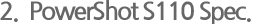 이전 모델에 비해서 많은 변화가 있는 모델이다. 우선 최신 스마트폰에 많이 적용되고 있는 멀티 터치 기능을 적용하였으며 빠른 af 성능을 지원한다. 여기에 무선 기능을 위한 wi-fi 기능도 추가 되었으며 고감도 iso 와 손떨림 방지 기능 및 안정적인 화이트 밸런스도 보여주고 있다. 외형적으로는 큰 변화가 없는 것처럼 보일 수도 있지만 powershot s110은 기능상으로 확실히 향상된 모습을 보여주고 있다.