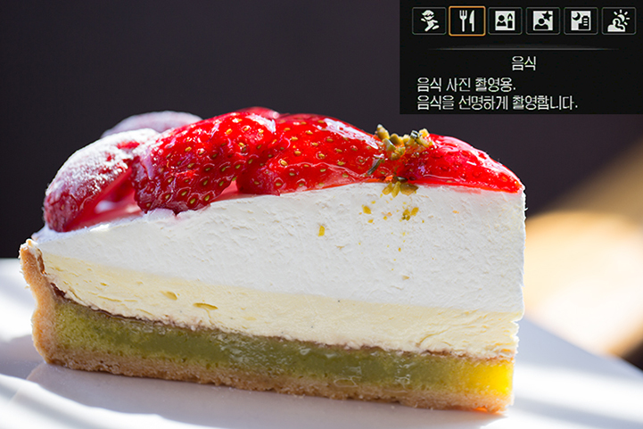 보급형 dslr 카메라를 사용자들은 다양한 장면 효과를 이용해 자동 촬영을 즐깁니다. eos 100d는 기존의 장면 효과들을 기본 지원하고, 어린이 / 음식 / 촛불, 총 3가지의 장면 효과를 새롭게 선보입니다.