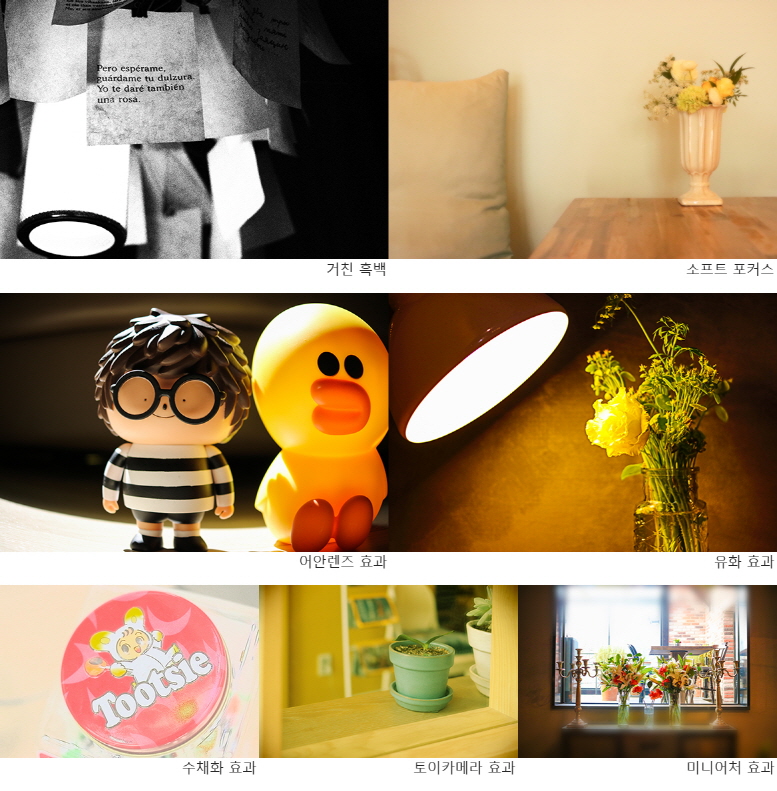 여러 가지 필터 효과를 촬영 장면에 맞게 적절히 사용하면 별도의 후보정을 하지 않아도 감각적인 사진을 표현할 수 있습니다.