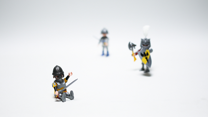 맨 앞쪽의 병사에게 초점이 맞춰져 있는 상태이며, 조리개를 조일수록 맨 오른쪽과 가운데 기사에게도 초점이 맞게 됩니다.