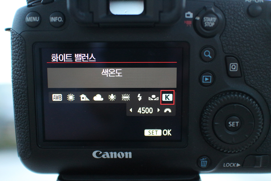 8) K(캘빈값) : 사용자가 원하는 색온도 값을 직접 입력할 수 있는 설정입니다.