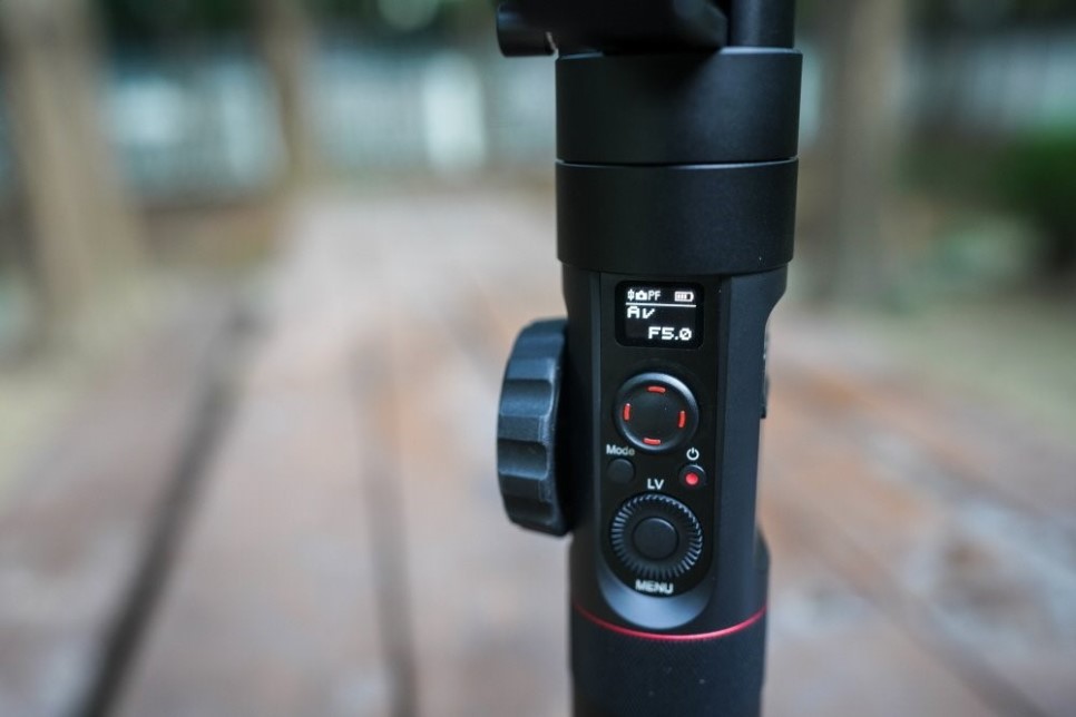 한 손 및 두 손으로 짐벌을 동작하기 때문에도 그렇지만, 짐벌이 작동되는 동안 카메라를 조작하기 힘들기 때문에 이러한 기능은 매우 편리함과 함께 더 폭넓은 촬영이 가능한데 녹화를 시작으로 사진 촬영, ISO 및 조리개, 셔터스피드, 노출 보정 및 자체 팔로우 포커스로 렌즈 초점 조절이 가능합니다.