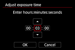 >(셀프 타이머: 연속)으로 설정돼 있으면 벌브 타이머를 설정할 수 없습니다.