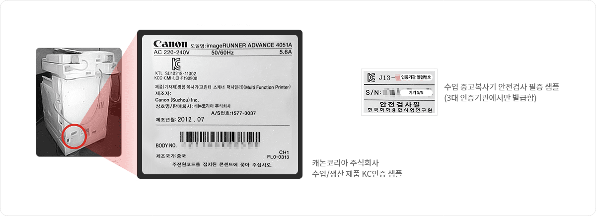 - 수입 중고복사기의 경우 안전검사 필증이 없는 복사기는 불법 수입기임 (법에 의해 저벌됨)